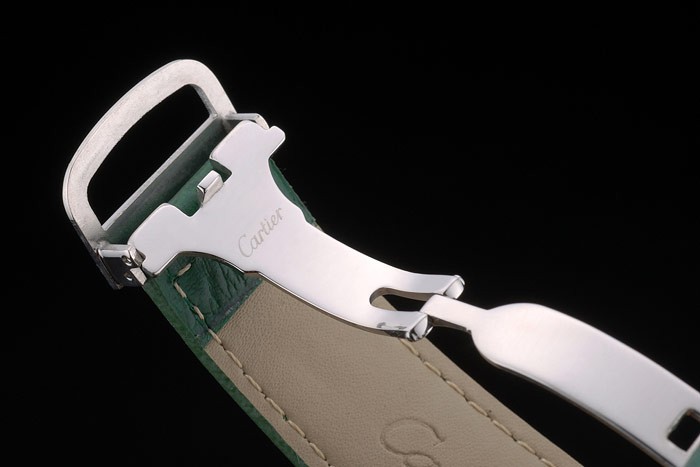 Bracelet de acero inoxidable: el calor Cartier en relieve correa de piel de cocodrilo verde con acero inoxidable pulido plegable en cierre de hebilla