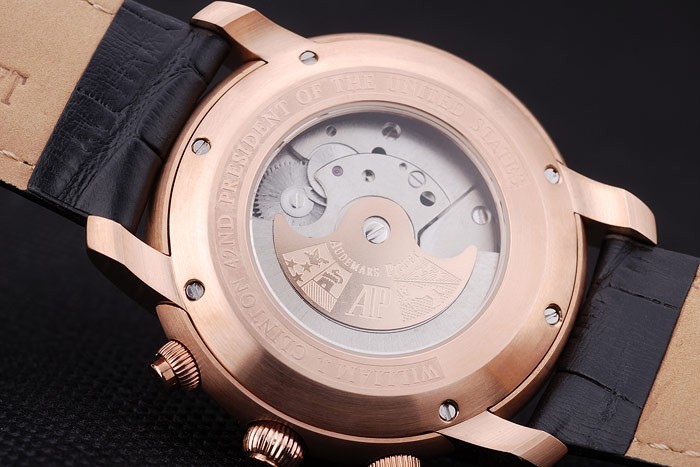 Volver: Rose-chapado en oro atornillado atrás con una mecánica que revelan transparencia en el centro y ‘William Clinton 42º presidente’ inscription
