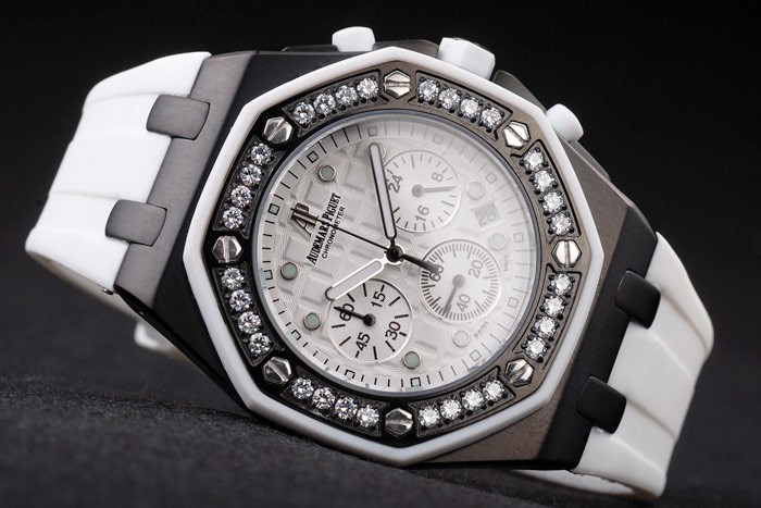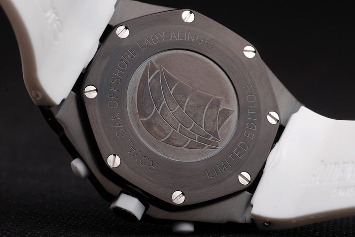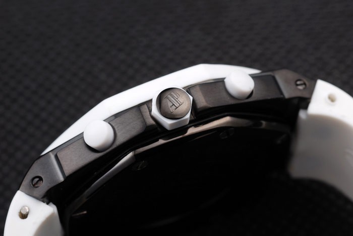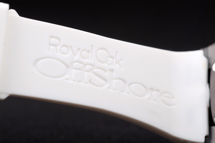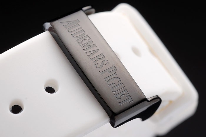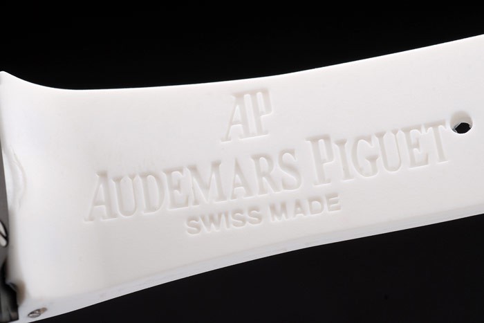 Bracelet de acero inoxidable: Audemars Piguet Royal Oak Offshore repujado correa de caucho blanco con Audemars Piguet grabado ion-plateado plegable en clasp