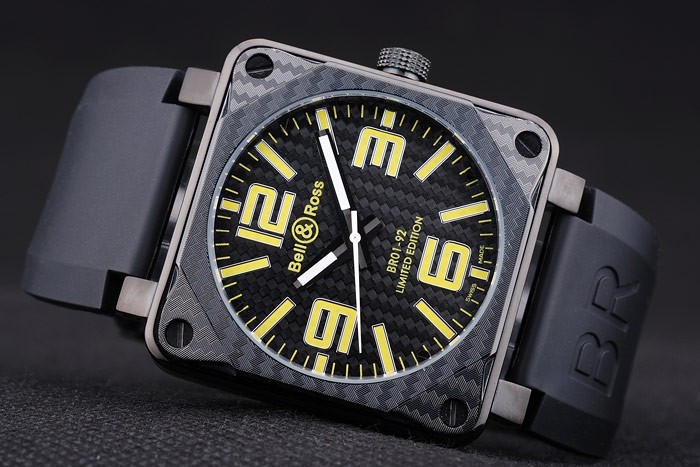 Bracelet de acero inoxidable: Bell & Ross logo y el producto de código en relieve correa de caucho negro con iones niquelado gancho hebilla clasp