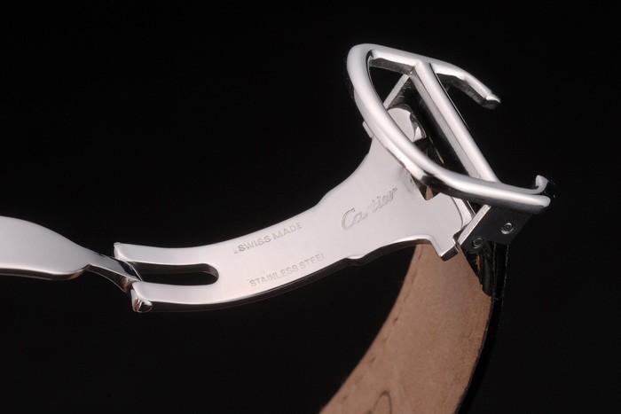 Bracelet de acero inoxidable: el calor Cartier en relieve correa de piel de cocodrilo negro con acero inoxidable pulido plegable en cierre de hebilla