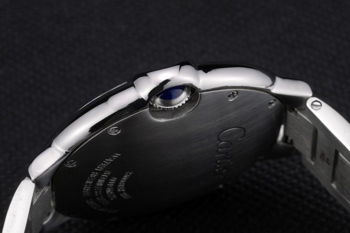 Volver: Acero inoxidable pulido atornillado en la parte trasera con grabados de Cartier