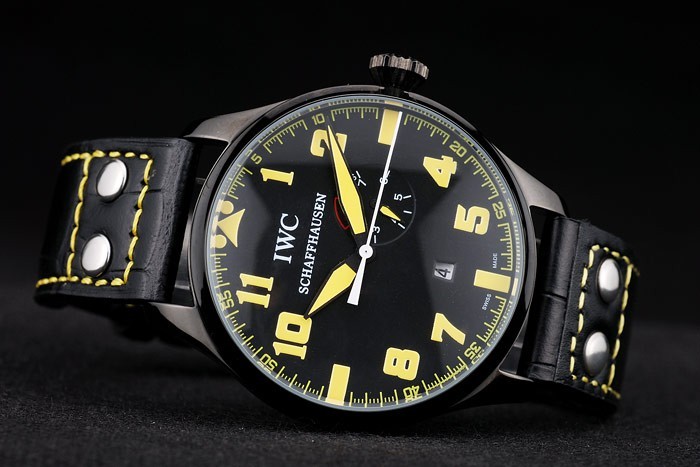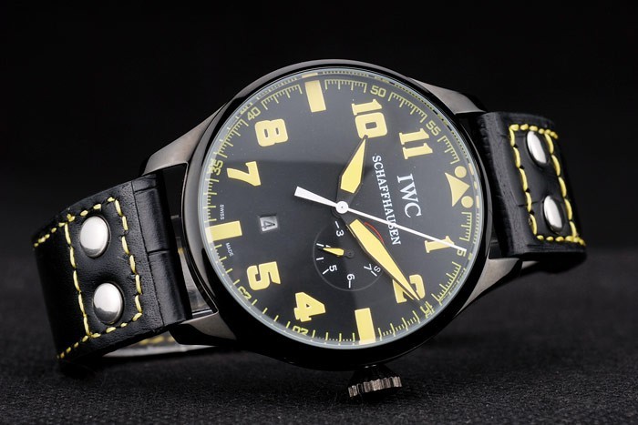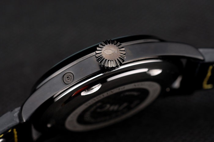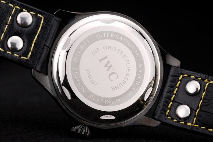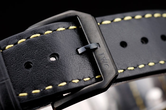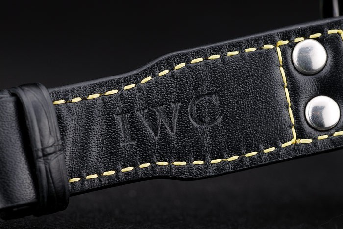 Bracelet de acero inoxidable: Correa CBI calor en relieve de cocodrilo negro de cuero con hilo de coser de color amarillo y la CBI grabado iónico plateado de acero inoxidable gancho hebilla clasp