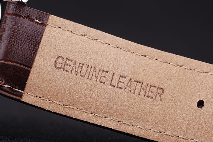 Bracelet de acero inoxidable: El calor en relieve correa de piel de cocodrilo marrón MontBlanc con el nombre y el logotipo MontBlanc grabado pulido acero inoxidable flip-sobre el gancho clasp