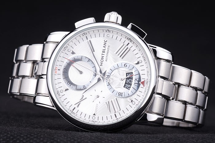 Crown: acero inoxidable pulido de la corona calado con el logotipo de Montblanc y dos coronas de pulsadores rectangulares a cada lado de it