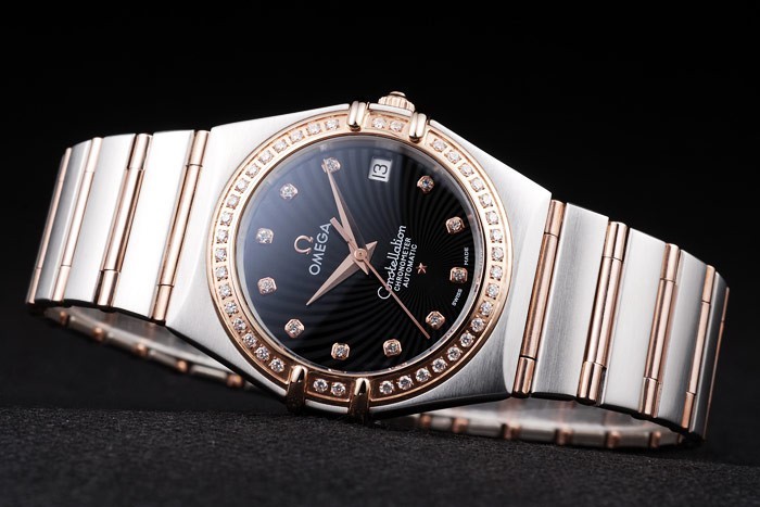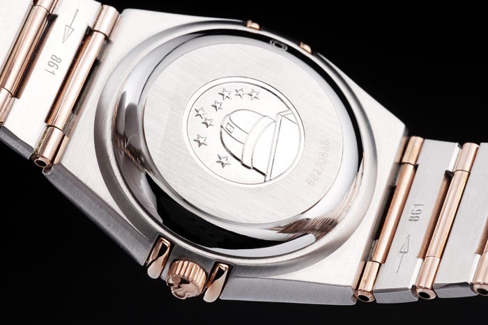 Diameter: corona cutwork 18k de oro rosa con Omega logo