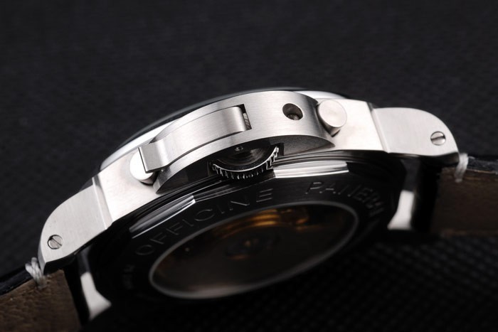 Este reloj tiene el vidrio AR. El color de la cara aparecerá diferentes colores dependiendo de cómo la luz cae sobre itBack: acero inoxidable cepillado complemento de vuelta con Officine Panerai engraving