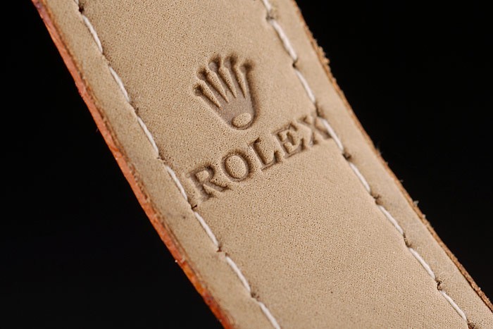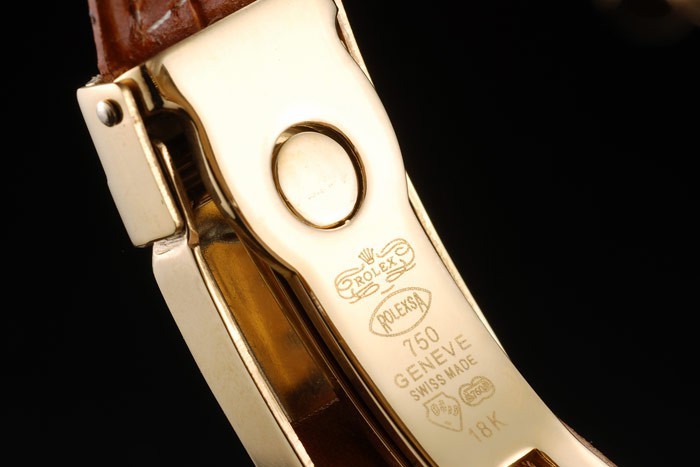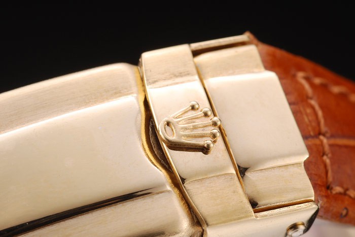 Bracelet: correa de piel de cocodrilo marrón en relieve de calor Rolex con grabado cierre desplegable de oro amarillo con el logotipo de Rolex en top