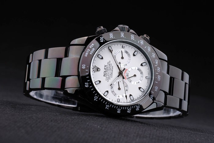 Bracelet de acero inoxidable: Negro esmaltado pulsera de eslabones de acero inoxidable con cierre desplegable grabado Rolex presentan Rolex logo