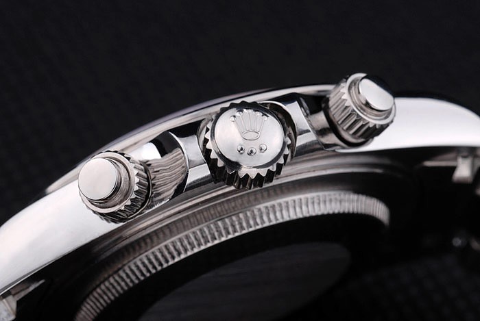 Crown: acero inoxidable pulido corona de calado con el logotipo de Rolex y dos coronas adicionales a cada lado de it