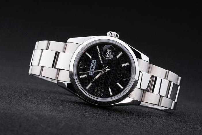 Bracelet acero inoxidable cepillado y pulido brazalete de eslabones de acero inoxidable con grabado Rolex doblar por la hebilla mostrando la longitud Rolex logo