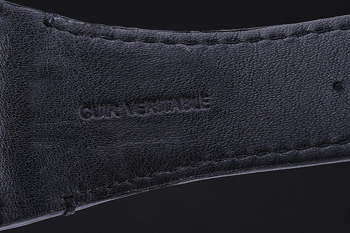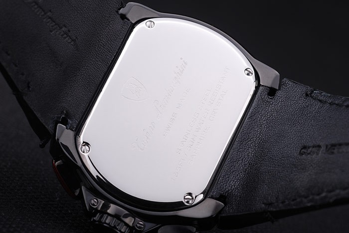 Bracelet de acero inoxidable: correa de cuero Negro con el sello en relieve de calor y el logotipo de Tonino Lamborghini Tonino Lamborghini en relieve y de ion-plateado pliegue grabado -En flip-sobre el gancho clasp
